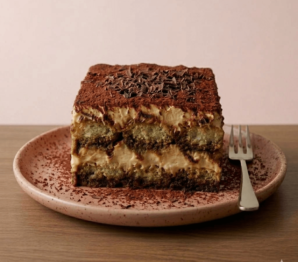 Tiramisú preparado con capas de bizcocho humedecido en café, queso mascarpone suave y un toque de cacao en polvo. Q.48.00